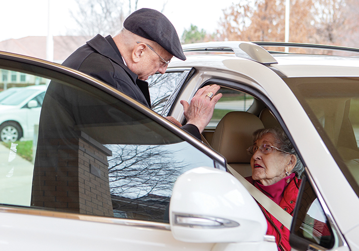 Archbishop Naumann hadn’t even made it through the doors of Santa Marta before a vehicle stopped and its occupant asked him for a blessing. He was, of course, more than happy to comply, and blessed resident Dorothy Kelly right there in the parking lot. LEAVEN PHOTO BY JAY SOLDNER