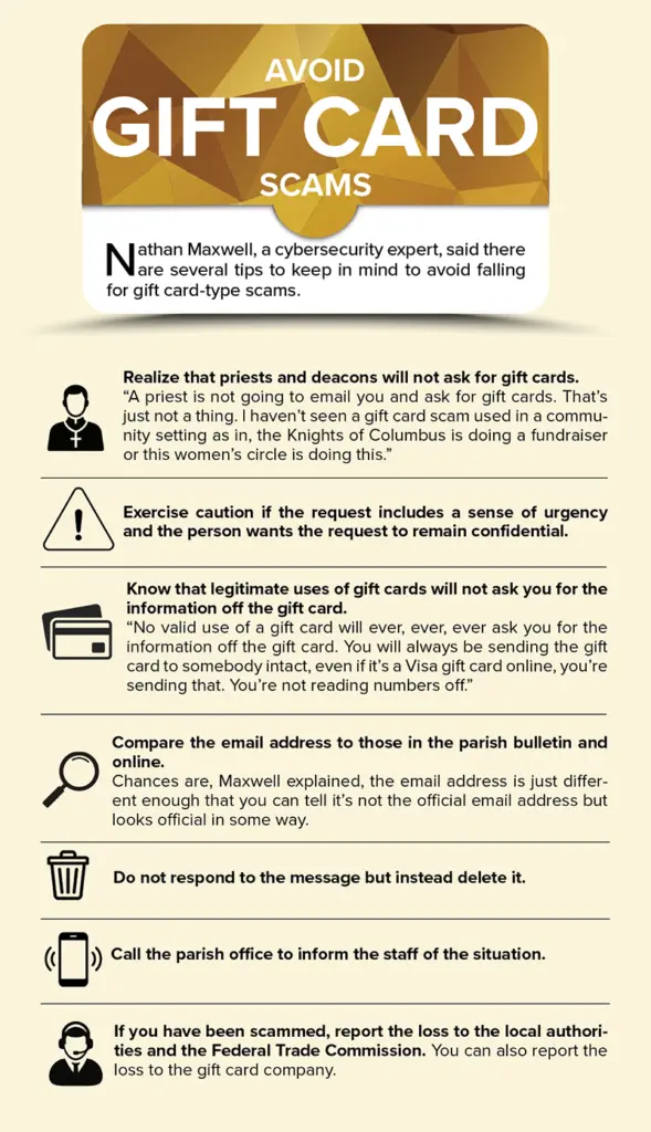 According to Nathan Maxwell, an expert for cybersecurity and network issues, every single archdiocesan parish has been affected by scams of all kinds, including one in particular which exploits the kindness of unsuspecting parishioners by impersonating priests, deacons or parish staff and using their positions to ask for gift cards, often claiming a need for immediate but discreet assistance.