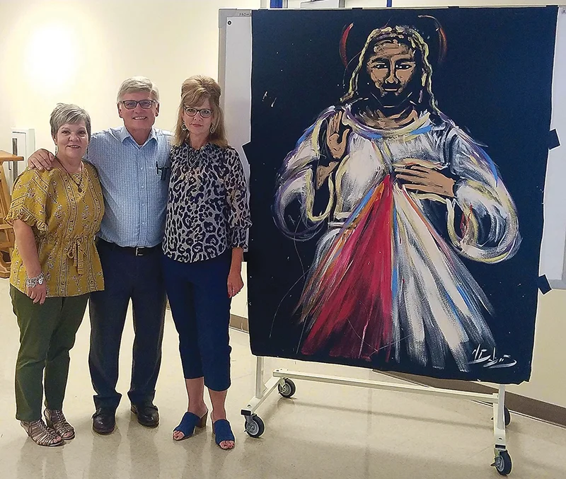 The guests also watched artist Mike Debus paint an image of Divine Mercy.