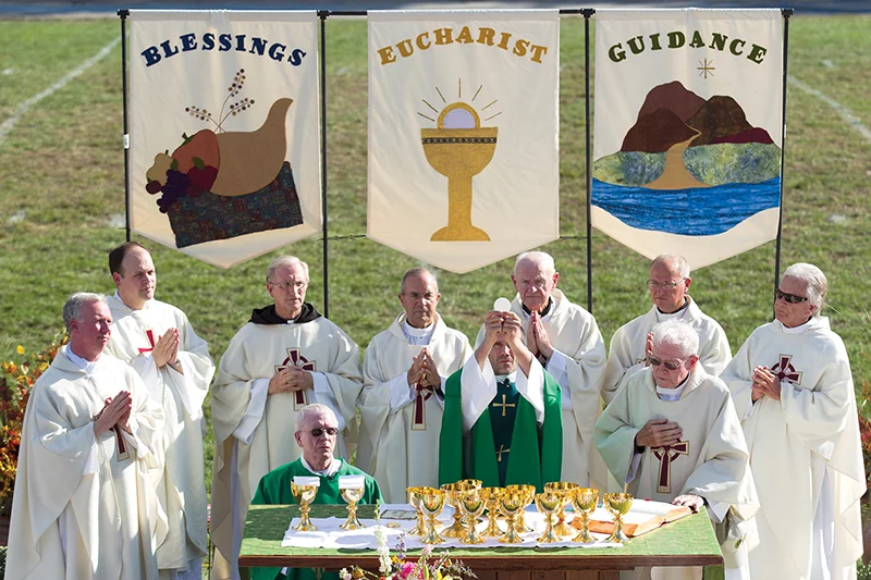 Father Scott Wallisch, pastor of St. Joseph Parish, Shawnee, was the main celebrant for the outdoor Mass. LEAVEN PHOTO BY JAY SOLDNER