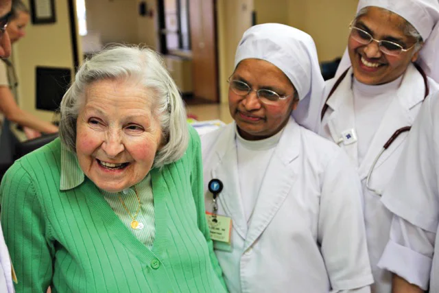 OLATHE — It’s easy to conjure up images of Mother Teresa when you encounter the nursing Sisters from India hard at work here at Villa St. Francis. From their white habits to their prayerful mien, the Sisters remind one of the blessed founder of the Missionaries of Charity, the one who told her nurse-Sisters: “We can do no great things; only small things with great love.”