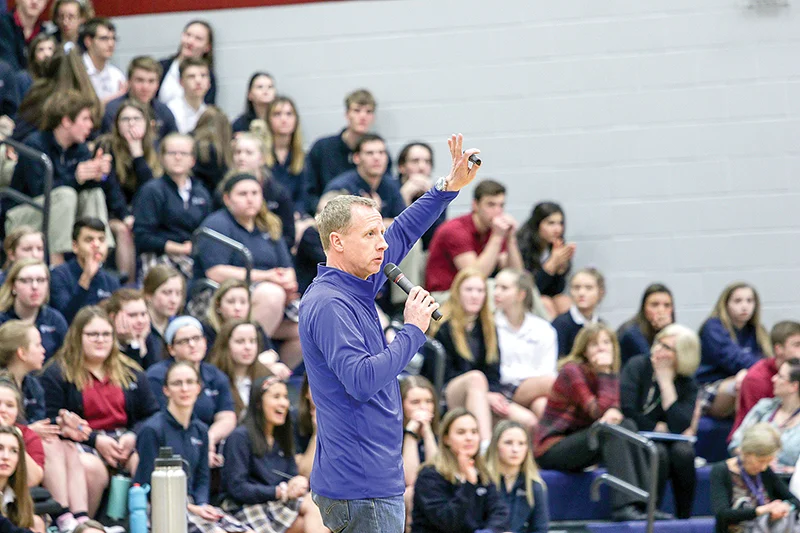 Russ Tuttle, president of the Stop Trafficking Project (STP) and BeAlert, an awareness and prevention strategy of STP, addressed Lenexa’s St. James Academy students in an all-school assembly March 1, informing and equipping them against this modern slavery.