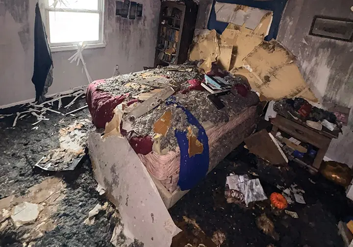 Thanks to her cousin, Baldwin “got out of the house, and within minutes the ceiling collapsed on her bed and flames were completely engulfing the house,” said Burns.