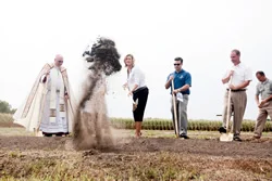 On Aug. 28, nearly 200 of St. Stanislaus’ 400-plus parishioners joined Archbishop Joseph Naumann and pastor Father Bruce Ansems to break ground on a new Roman-style basilica church to be constructed later this year. Others involved in the groundbreaking ceremony included members of the building committee, the project’s architect, the general contractor and other parish representatives.