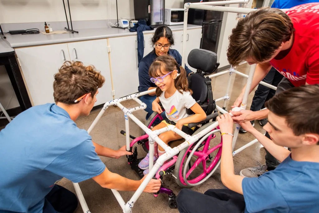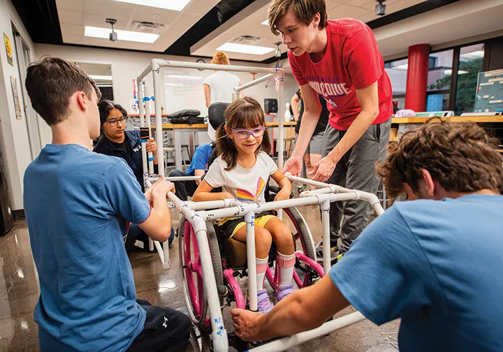 Work on Alicia’s costume began at a build day at Hammerspace Community Workshop in Kansas City, Missouri, after the students had met her and measured her wheelchair.