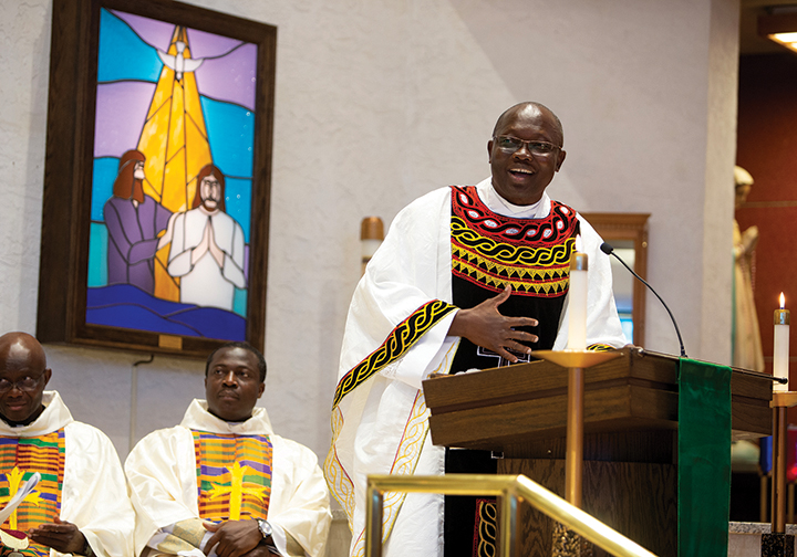 Concelebrants were Father Mark Opoku Acheampong; Father Nick Blaha, pastor of Christ the King; Father Lazarus, chaplain of the Dagara tribe from Pittsburgh, Pennsylvania; Father Beyuo Kuukole, chaplain of the African Catholic Community of Kansas; Father William Dun-Dery; and Father Maclean Aaku. (Father Kuukole provides sacramental assistance at Christ the King, Blessed Sacrament and Our Lady & St. Rose parishes, all in Kansas City, Kansas.)