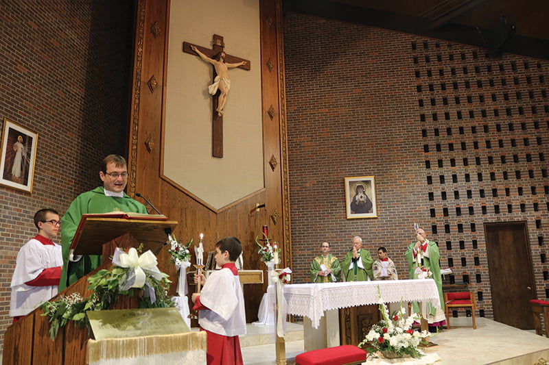 Three native sons of the parish were also on hand to concelebrate the Mass — archdiocesan vocation director Father Dan Morris, former pastor Father Al Rockers and pastor Father Tim Haberkorn.