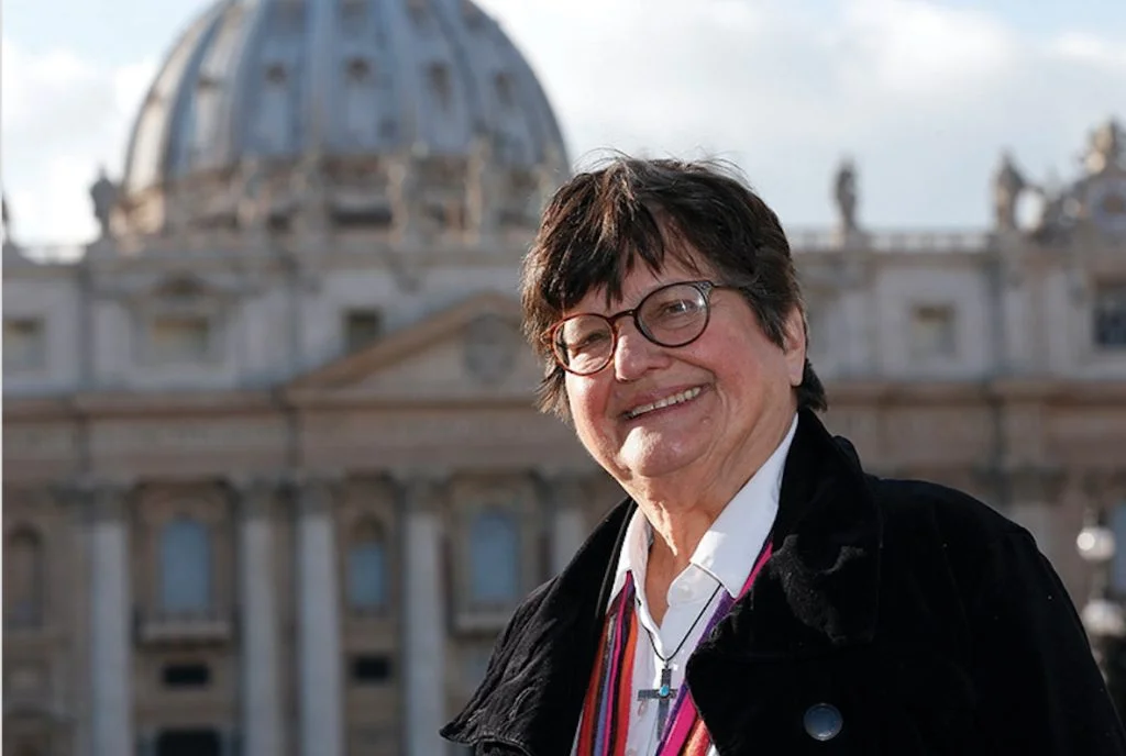 Saint Joseph Sister Helen Prejean, who has worked in prison ministry and against the death penalty for decades, is pictured in St. Peter’s Square at the Vatican. Sister Prejean spoke at the University of Kansas on March 5. CNS PHOTO/PAUL HARING
