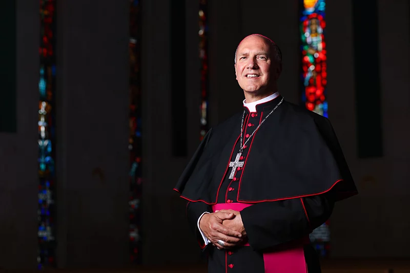 Bishop-designate Gerald L. Vincke of Salina, Kan., whose appointment was announced June 13, poses for a photo July 23 at Sacred Heart Cathedral in Salina. His ordination and installation Mass is scheduled for Aug. 22. Bishop-designate Vincke, 53, a priest of the Diocese of Lansing, Mich., will become the 12th bishop of Salina. He succeeds Bishop Edward J. Weisenburger, who was named bishop of Tucson, Ariz., Oct. 3, 2017. (CNS photo/Karen Bonar, The Register)